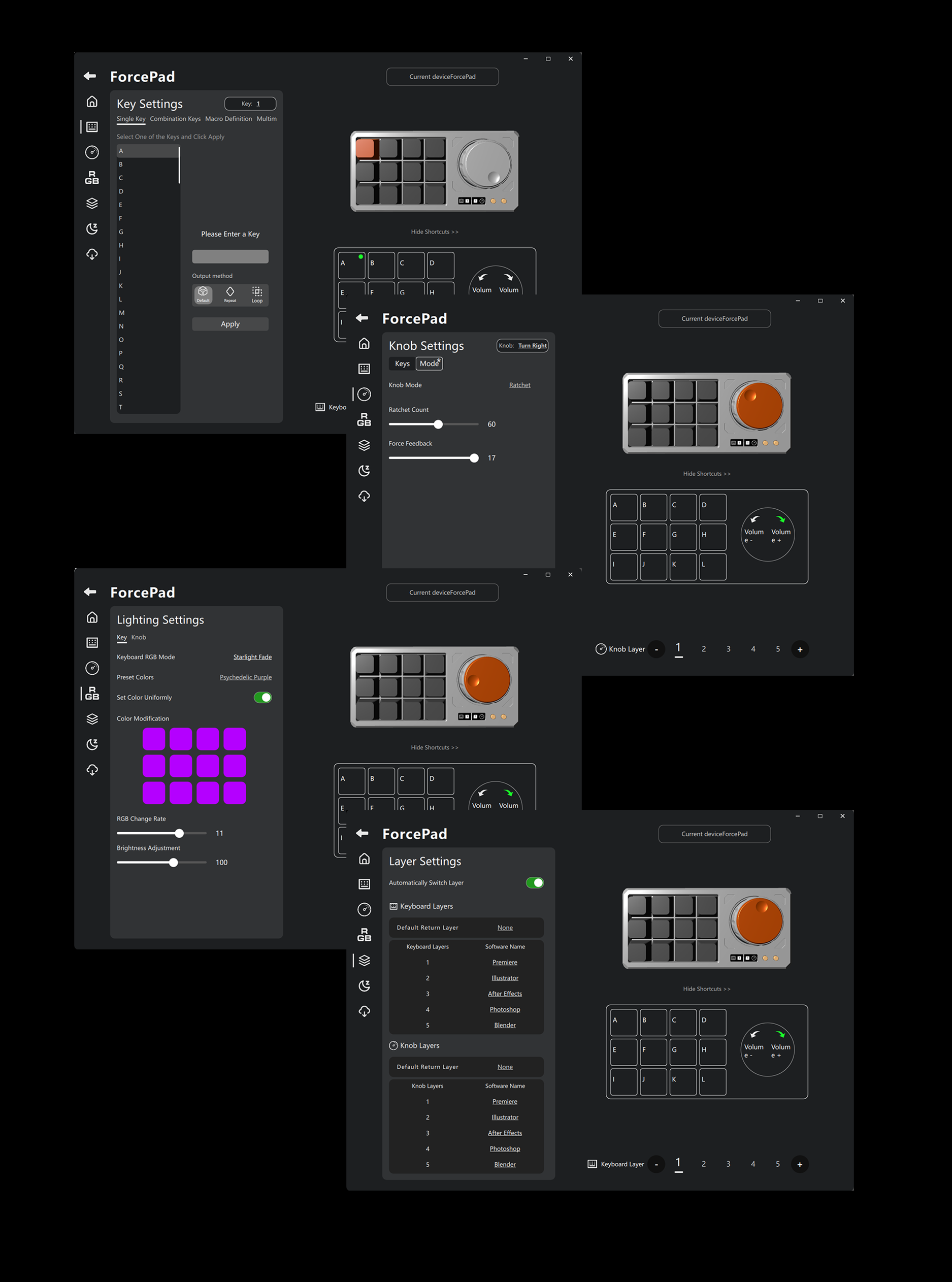 Powered by an intelligent driver system developed specifically for ForcePad. Automatically switches key layers based on the active application, so controls are always right where you need them.