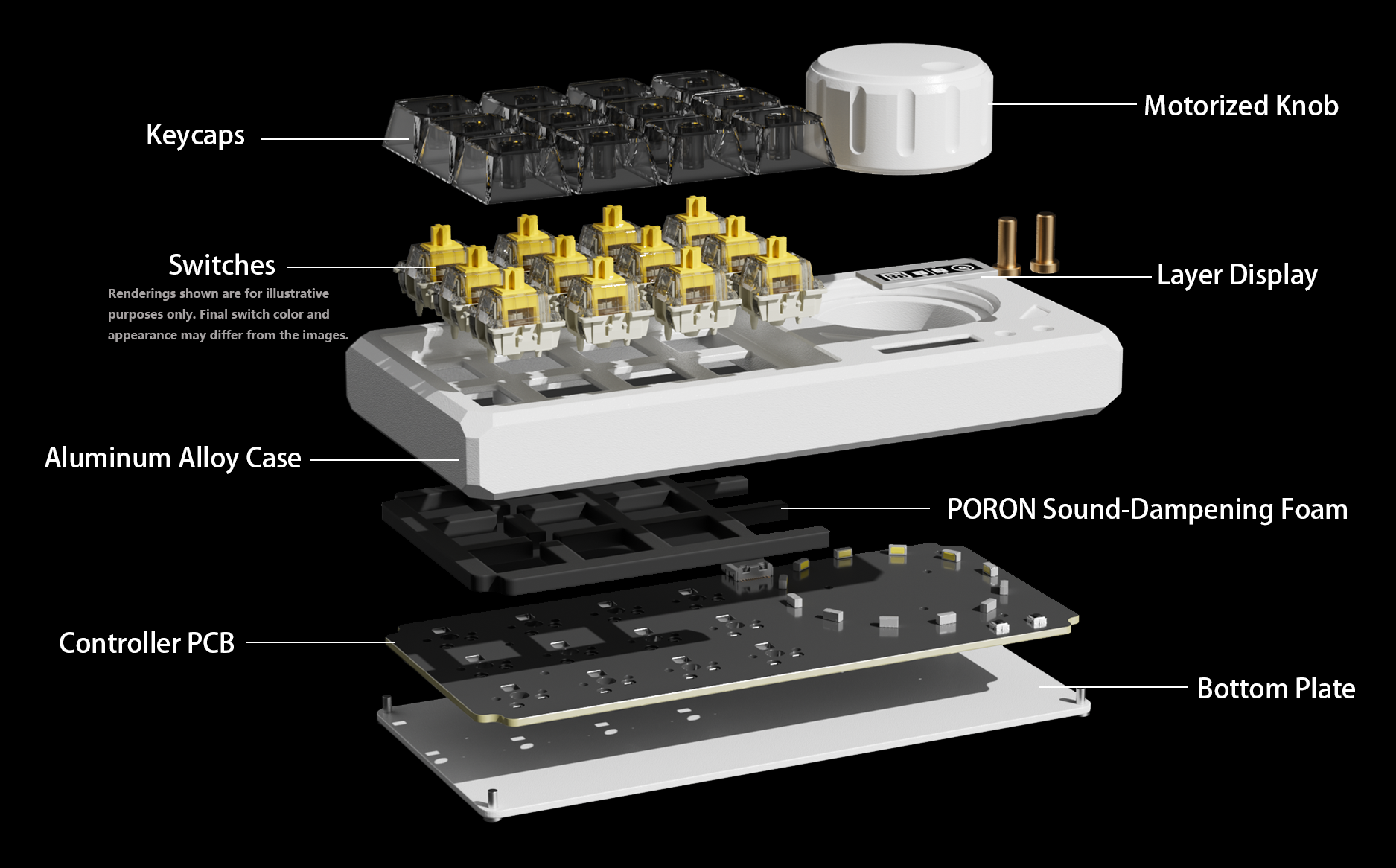 Supports up to five layers. Layer control for the keyboard and the motorized knob is independent, giving you a more flexible workflow.